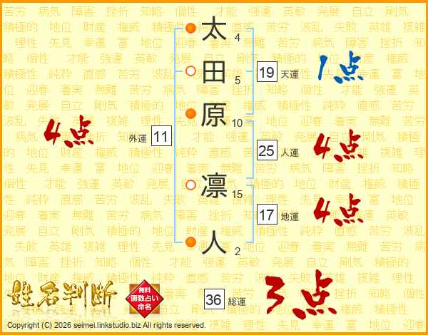 太田原凛人さんの人運は25画の4点!