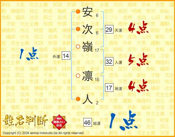 安次嶺凛人さんの総運は46画の1点!