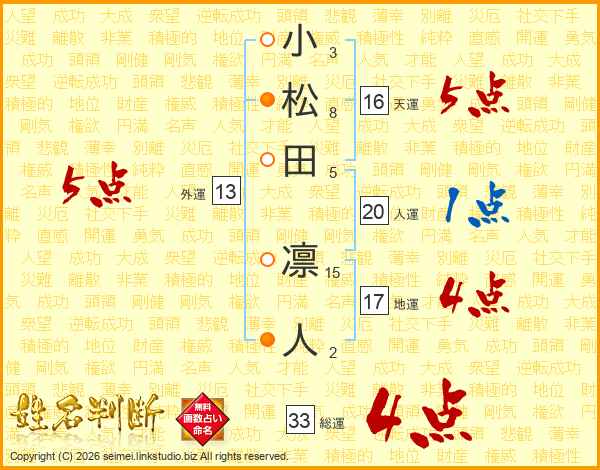 小松田凛人さんの総運は33画の4点!
