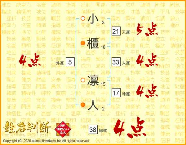 小櫃凛人さんの総運は38画の4点!