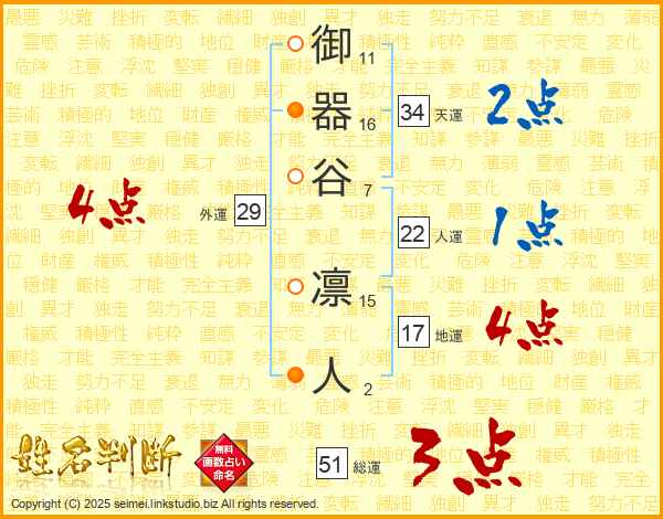 御器谷凛人さんの総運は51画の3点!