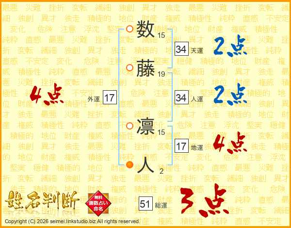数藤凛人さんの総運は51画の3点!