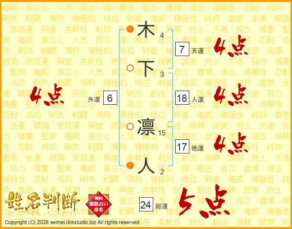 木下凛人さんの天運は7画の4点!