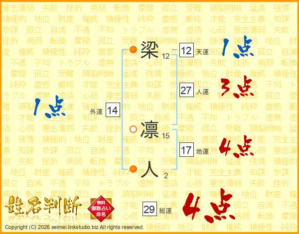 梁凛人さんの総運は29画の4点!