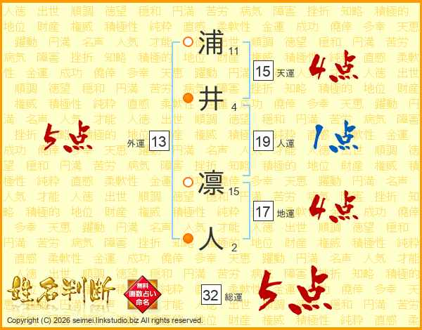 浦井凛人さんの総運は32画の5点!