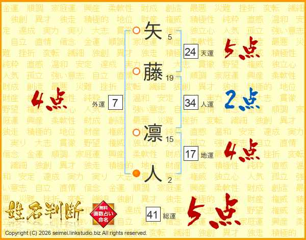 矢(5画)藤(19画) 凛(15画)人(2画)