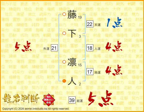 藤下凛人さんの総運は39画の5点!
