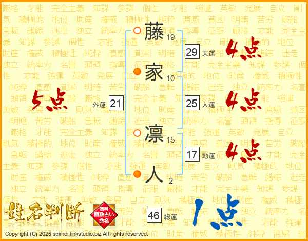 藤家凛人さんの総運は46画の1点!