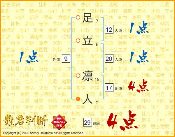 足立凛人さんの総運は29画の4点!