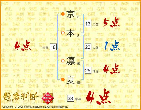 京本凛夏さんの総運は38画の4点!
