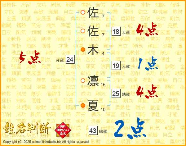 佐(7画)佐(7画)木(4画) 凛(15画)夏(10画)