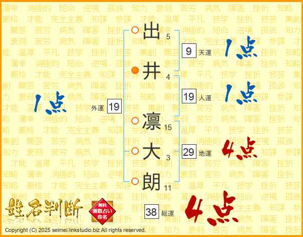出井凛大朗さんの総運は38画の4点!