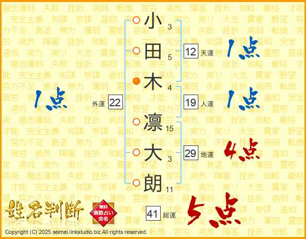 小田木凛大朗さんの地運は29画の4点!