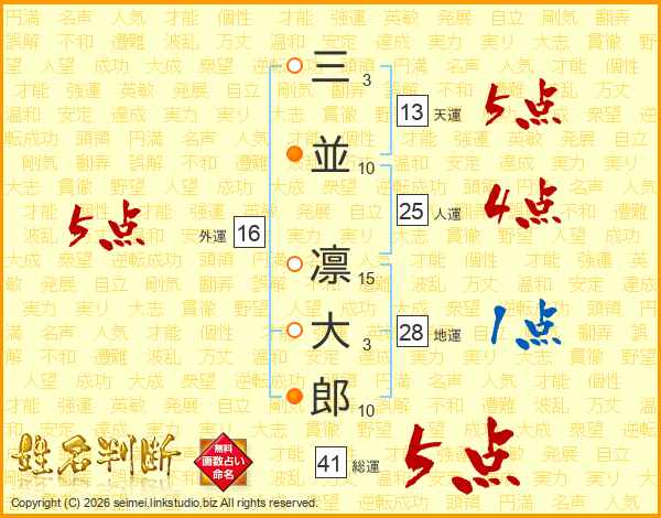 三並凛大郎さんの総運は41画の5点!