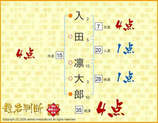 入田凛大郎さんの総運は35画の4点!