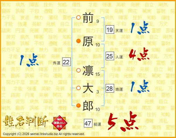 前(9画)原(10画) 凛(15画)大(3画)郎(10画)