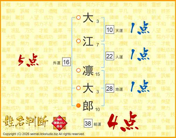 大江凛大郎さんの総運は38画の4点!