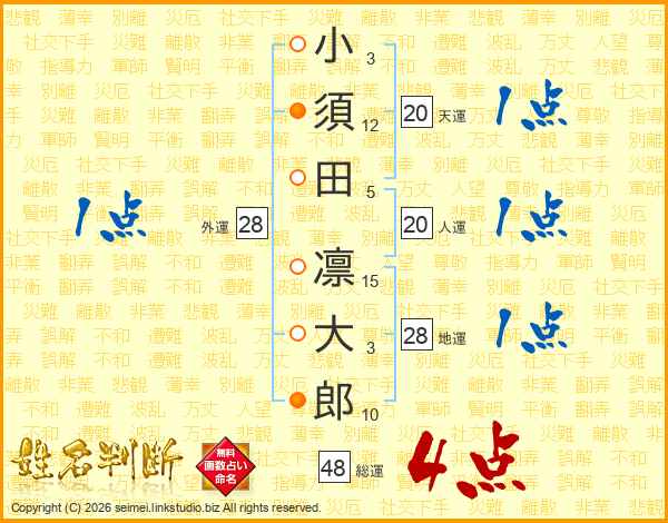 小(3画)須(12画)田(5画) 凛(15画)大(3画)郎(10画)