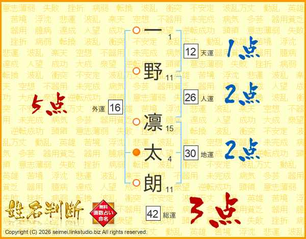 一野凛太朗さんの総運は42画の3点!