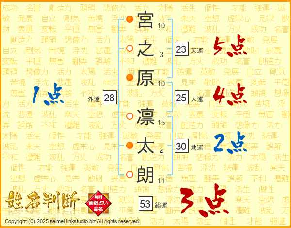 宮之原凛太朗さんの人運は25画の4点!