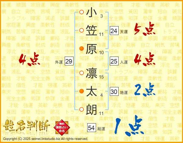 小笠原凛太朗さんの総運は54画の1点!