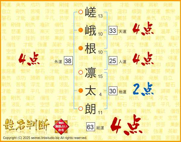 嵯峨根凛太朗さんの総運は63画の4点!