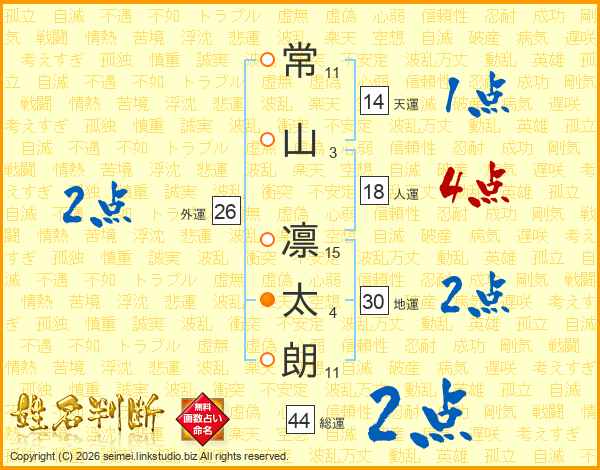 常山凛太朗さんの総運は44画の2点!