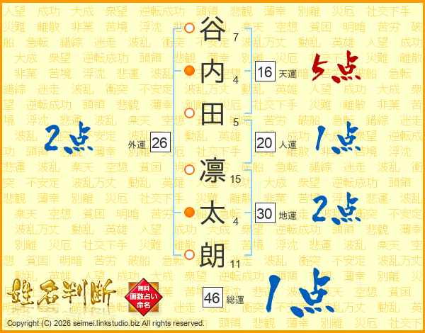 谷内田凛太朗さんの総運は46画の1点!
