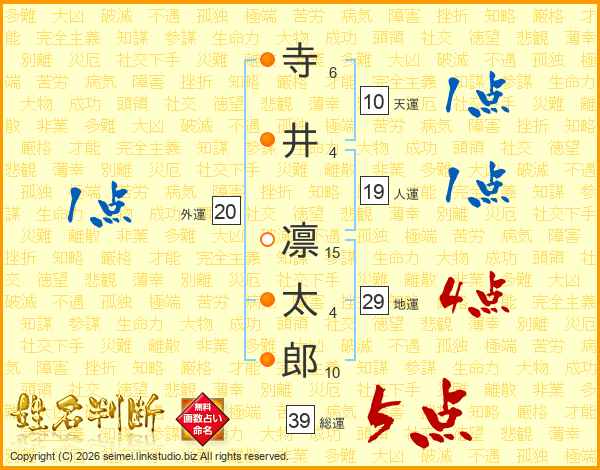 寺井凛太郎さんの総運は39画の5点!