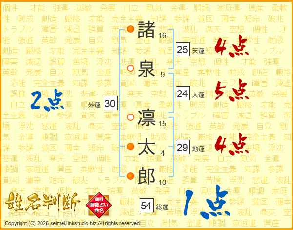 諸(16画)泉(9画) 凛(15画)太(4画)郎(10画)