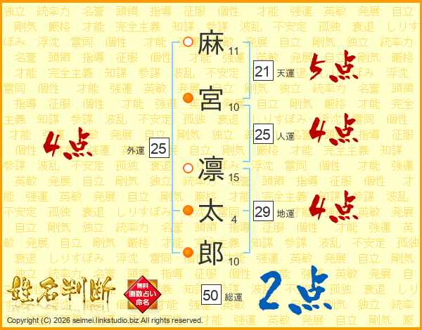 麻宮凛太郎さんの外運は25画の4点!