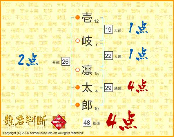 壱岐凛太郎さんの総運は48画の4点!