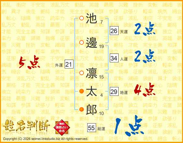 池邊凛太郎さんの天運は26画の2点!