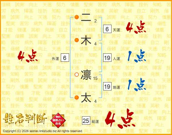 二木凛太さんの総運は25画の4点!