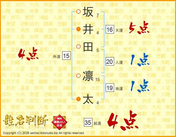 坂井田凛太さんの総運は35画の4点!