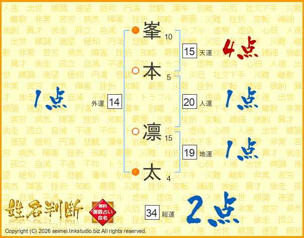 峯本凛太さんの天運は15画の4点!