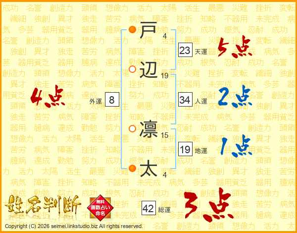 戸(4画)辺(19画) 凛(15画)太(4画)