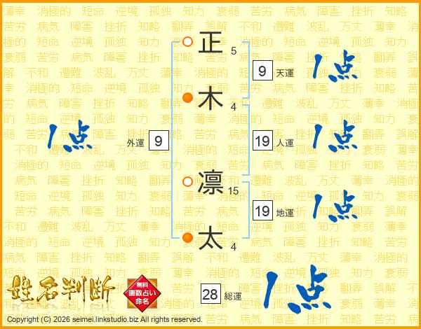 正(5画)木(4画) 凛(15画)太(4画)