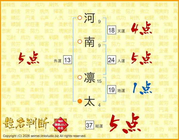 河南凛太さんの外運は13画の5点!