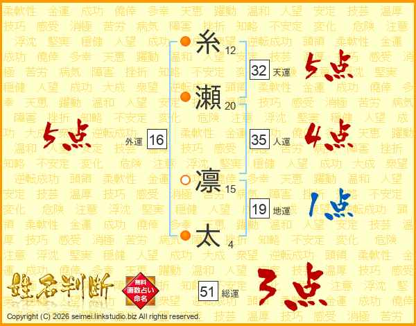 糸瀬凛太さんの総運は51画の3点!
