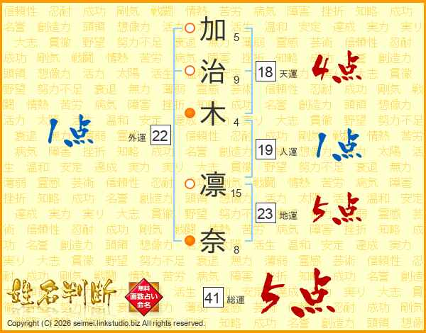 加(5画)治(9画)木(4画) 凛(15画)奈(8画)