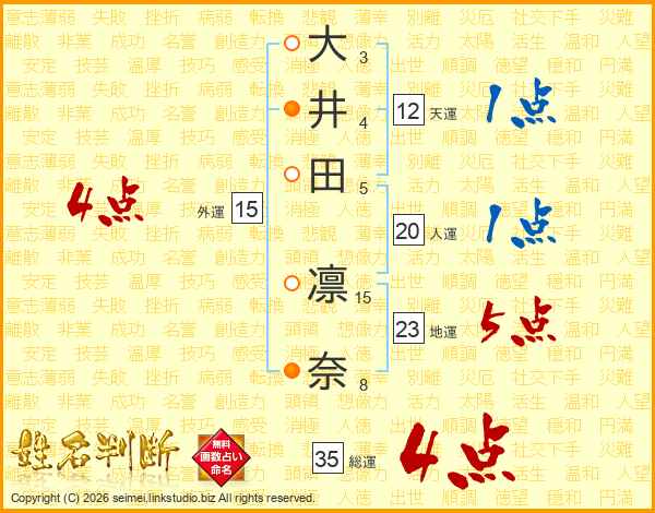 大井田凛奈さんの総運は35画の4点!