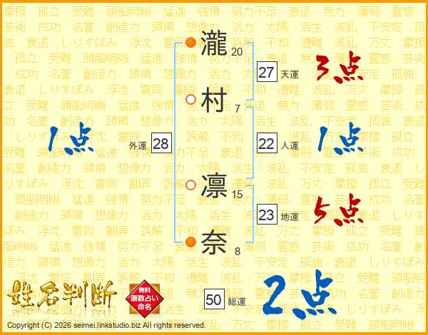 瀧村凛奈さんの総運は50画の2点!