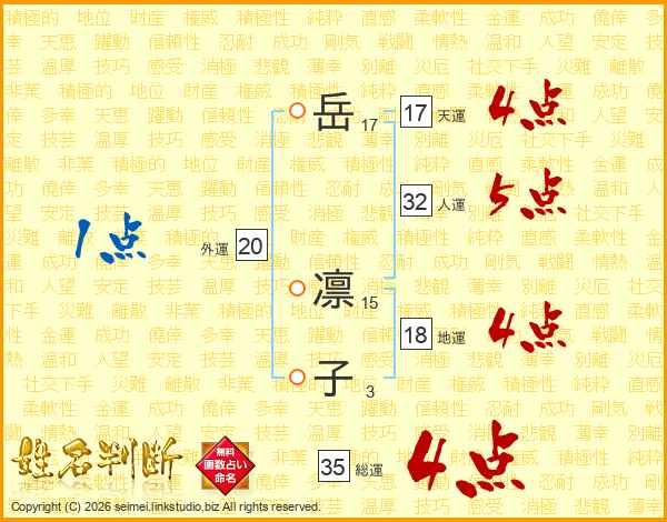 岳凛子さんの総運は35画の4点!