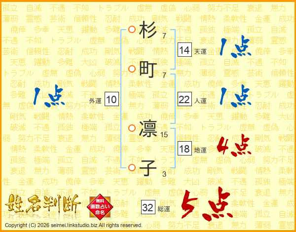 杉町凛子さんの総運は32画の5点!