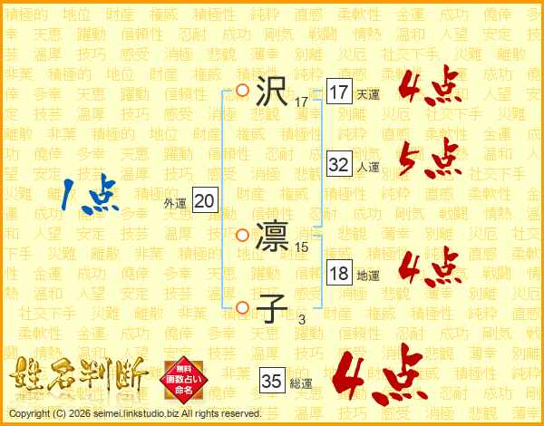 沢凛子さんの総運は35画の4点!