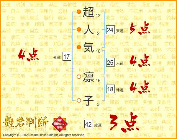 超人気凛子さんの天運は24画の5点!