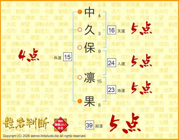 中(4画)久(3画)保(9画) 凛(15画)果(8画)