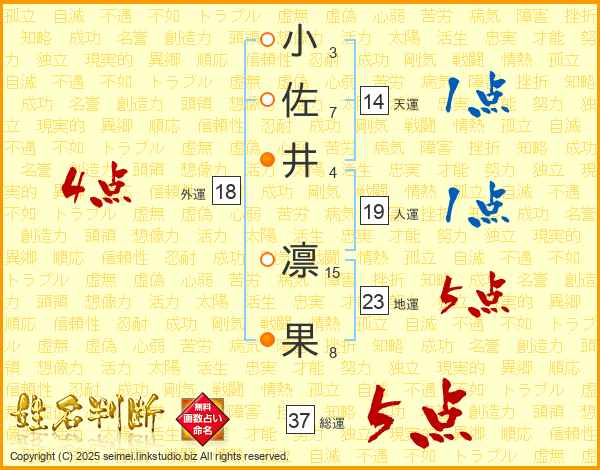 小(3画)佐(7画)井(4画) 凛(15画)果(8画)