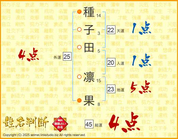 種(14画)子(3画)田(5画) 凛(15画)果(8画)